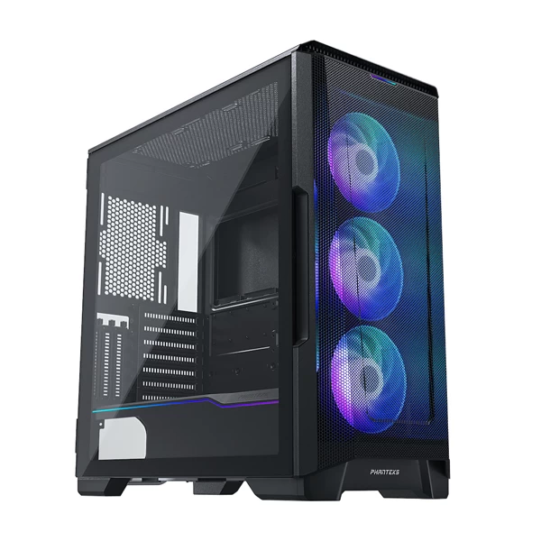 Phanteks Eclipse Series Mid Tower Cabinet With D-RGB Lighting and Tempered Glass Side Panel, The P500A Brings in 7 Fan Mounts, 3 Included Fans, 7 3 Vertical Expansion Slot Form Factor, USB C Connectivity and 425mm GPU Mounting Slot.