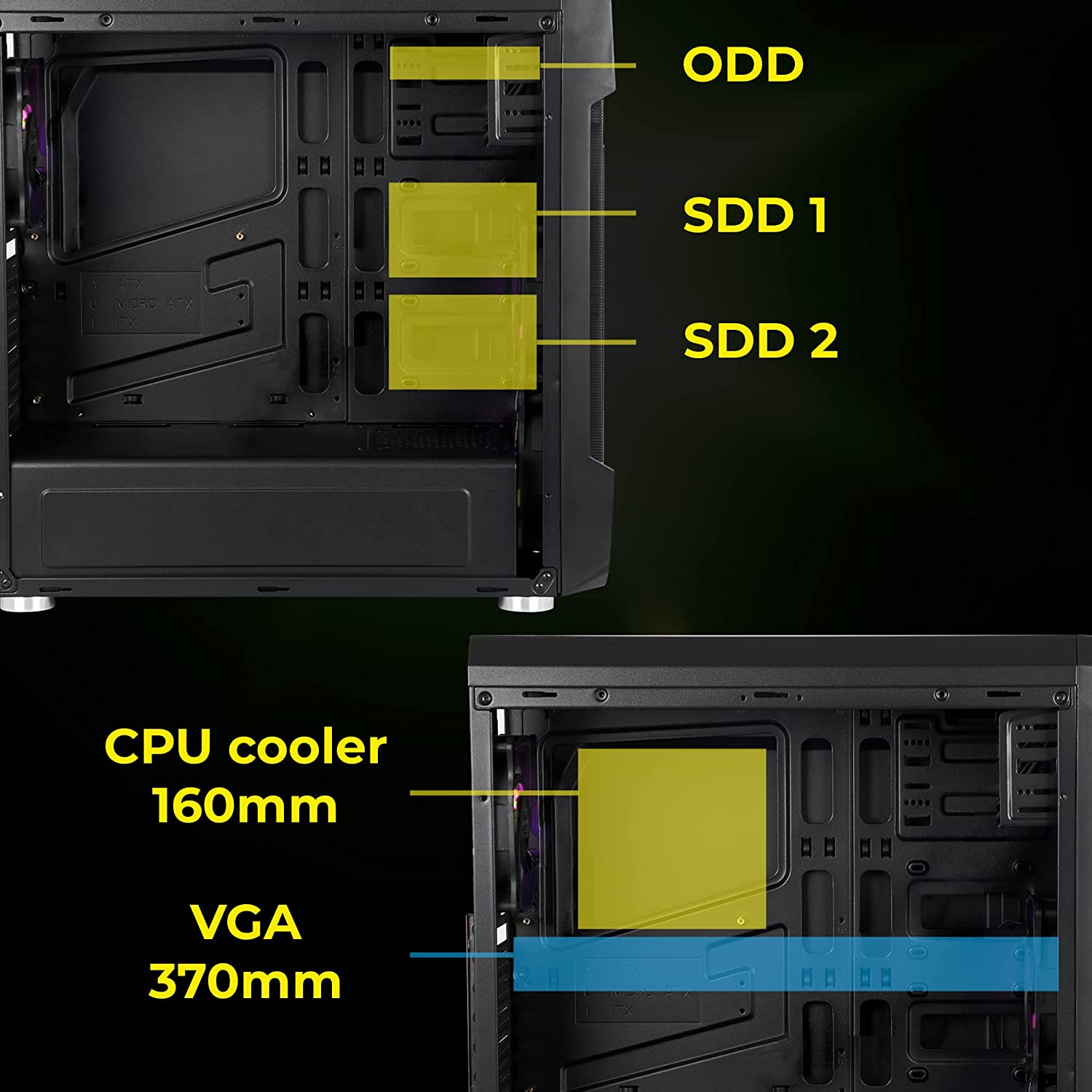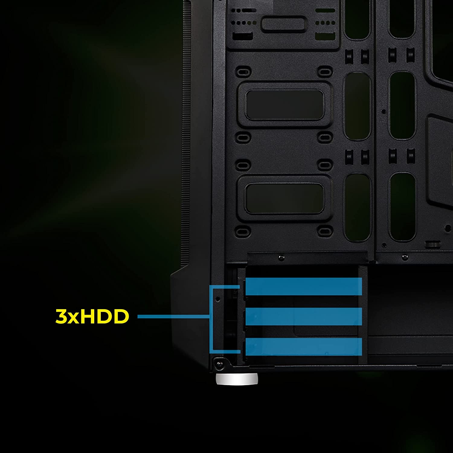| Let your chassis steal the spotlight as it features dual 120mm front RGB fans and one 120mm rear RGB fan to give an optimized airflow(ZEBRONICS Zeb-Mars PRO PC Cabinet With RGB LED Fans). The chassis comes with an LED control switch to control the RGB. |